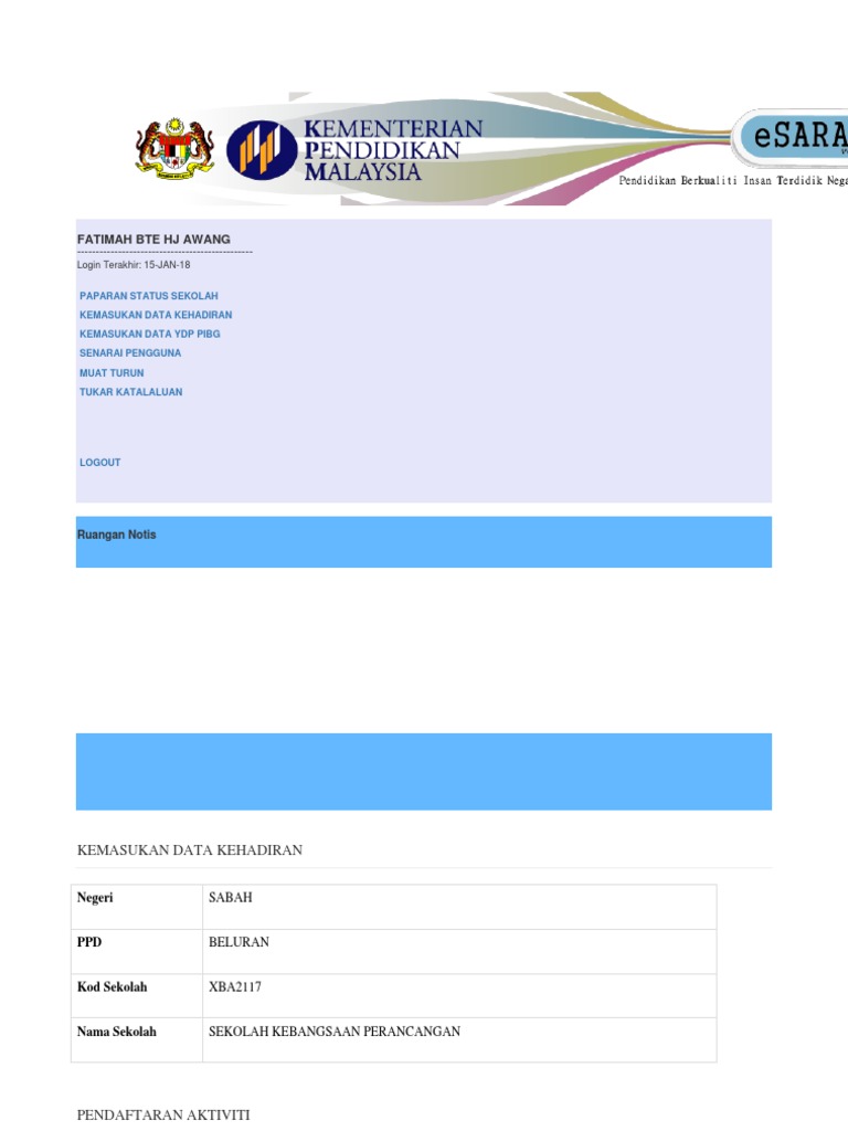 E Sarana Ibu Bapa Login from demo.dokumen.tips Bukan tak nak buat tapi sistem ini. Simplified single user transactional product ideally suited for sole proprietorship concerns, micro enterprises or individual businessmen who require online transaction facility in their firm's accounts. Laptop, smartphone, jaringan internet cepat. Cara daftar pengguna baru modul pengurusan guru sekolah kpm. Çılgın sayısal loto, süper loto, şans topu, kazı kazan'ın internete özel oyunlarını online oynayabilir ve milli piyango biletini internetten satın alabilirsin. Esarana atau sarana membawa erti (segala) sesuatu yang dapat digunakan sebagai alat dan sebagainya untuk mencapai atau melaksanakan sesuatu. Sarana dan prasarana adalah suatu fasilitas pendidikan untuk mendukung berjalannya proses pembelajaran peserta didik dan terwujudnya suatu penyelenggaraan pendidikan, baik fasilitas pendidikan yang dapat bergerak dan tidak dapat bergerak. Tutorial ini khas buat pengguna utama portal eoperasi iaitu pentadbir sistem dan pengguna (guru dan bukan guru).