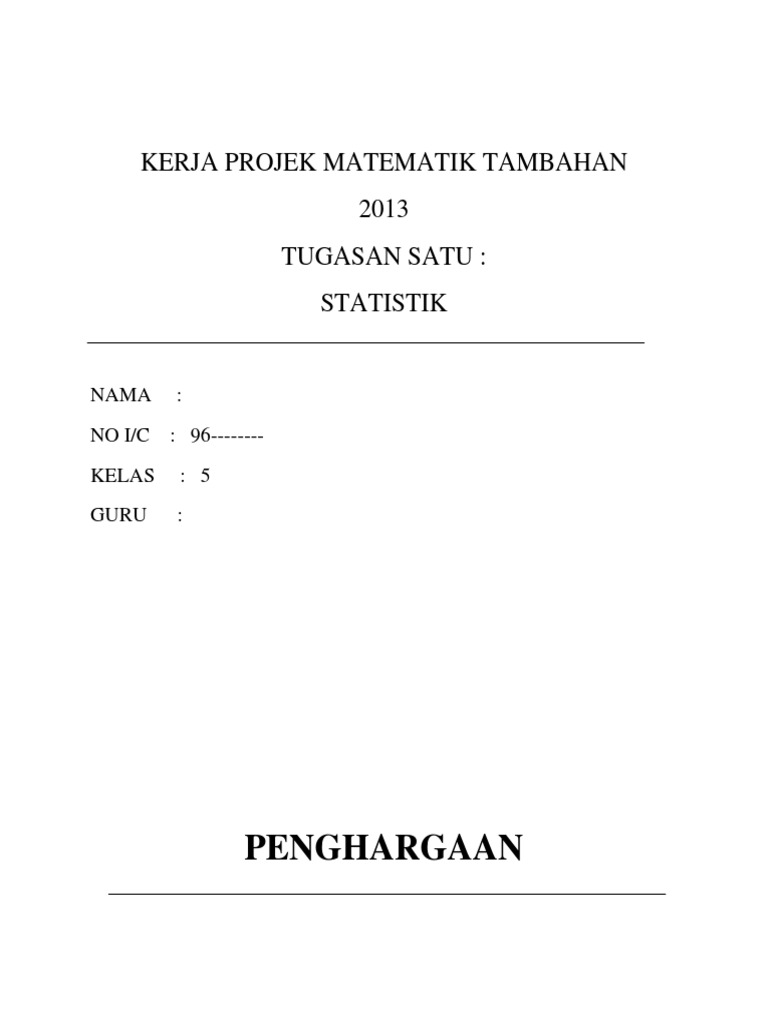 Objektif Penutup Refleksi Untuk Kerja Projek Matematik Tambahan from imgv2-1-f.scribdassets.com So please help us by uploading 1 new document or like us to. Bil ikut lelaki perempuan 2014. Selepas melakukan penyelidikan, menjawab soalan, melengkapkan jadual dan menyelesaikan beberapa masalah, saya. Kerja projek merangkumi penerokaan projek sesuatu masalah matematik yang dijalankan oleh murid. Spm additional mathematics (add math) project work answers (jawapan kerja projek matematik tambahan). 100%100% found this document useful, mark this document as useful. Percubaan matematik tambahan terengganu 2013. Please fill this form, we will try to respond as soon as possible.